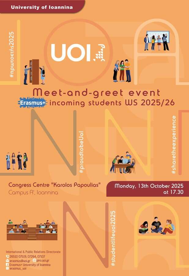Οι φοιτητές/τριες που προέρχονται από Πανεπιστήμια της Αλβανίας, της Βουλγαρίας, της Γαλλίας, της Γερμανίας, της Γεωργίας, της Δανίας, του Ηνωμένου Βασιλείου, της Ισπανίας, της Ιταλίας, της Κύπρου, της Λιθουανίας, της Πολωνίας, της Σερβίας, της Τσεχίας και της Τουρκίας θα φοιτήσουν στο Πανεπιστήμιο Ιωαννίνων το τρέχον χειμερινό εξάμηνο.
